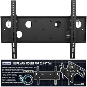 Cheetah Mounts Plasma LCD Flat Screen TV Articulating Full Motion Dual Arm Wall Mount Bracket For 32-65" Displays Up To 165LBS Black With 10' High Speed HDMI Cable With Ethernet Fits Up To 24" Studs